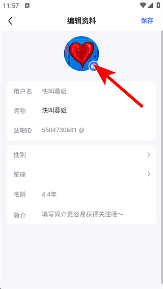 4、在编辑资料页面,点击头像上的编辑图标,选择新的头像图片,完成更换后点击保存即可。