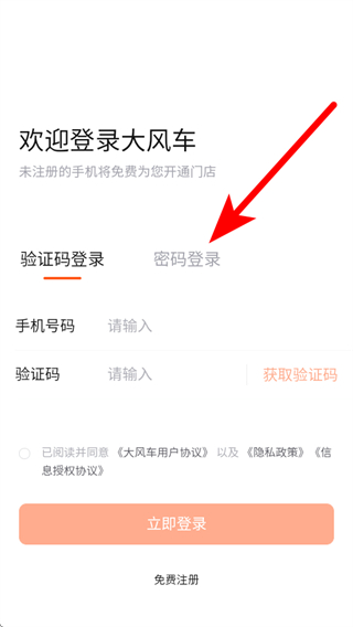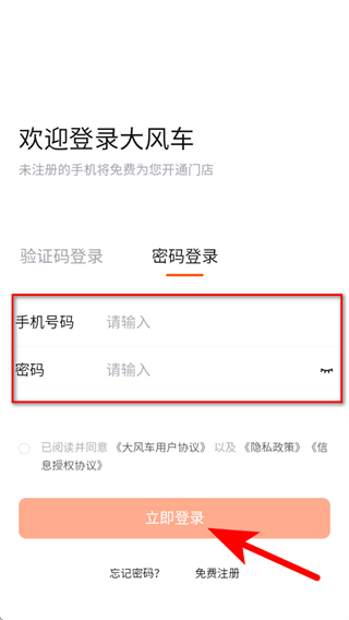 3、在界面输入手机号和密码后,点击立即登录完成账号密码登录。