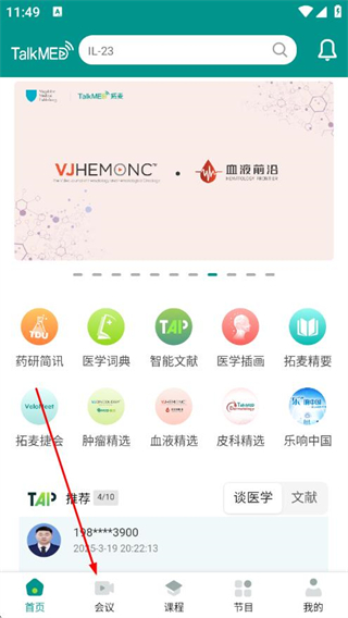 1、打开TalkMED APP,点击底部会议,进入会议页面。