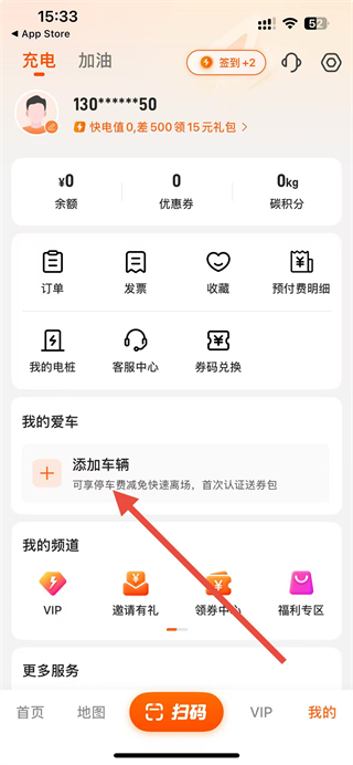 2、在个人页面点击添加车辆选项,进入添加车辆页面。