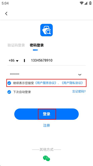 4、勾选接受用户服务协议用户隐私协议点击登录按钮。