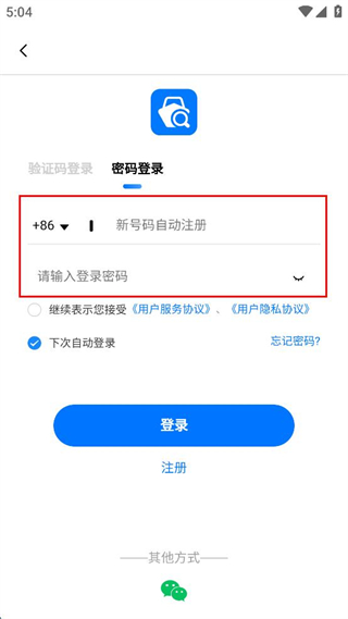 3、在登录界面输入手机号码和登录密码。