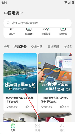 3、在行前准备内容界面选择出境游流量怎么买?这样才不会吃亏!的文章。