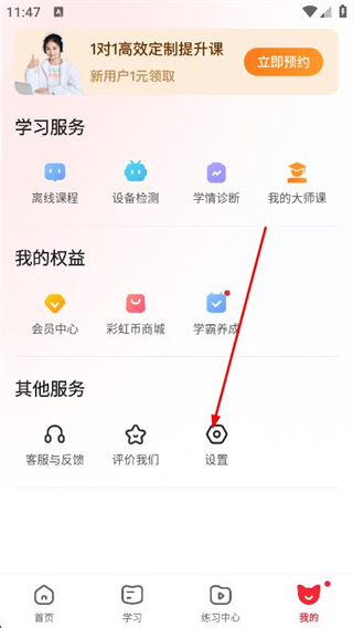 1、打开掌门1对1辅导app,点击底部导航栏的我的选项。