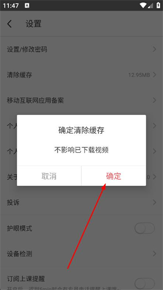 4、在弹出的提示框中,点击确定即可清空缓存。