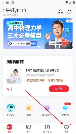 1、打开掌门1对1辅导app,点击底部导航栏的我的选项。