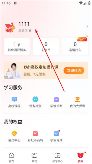 1、打开掌门1对1应用,点击底部导航栏中的我的选项,进入个人页面。