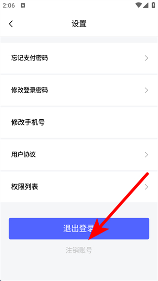 3、在设置页面中,点击注销账号选项,进入商户注销页面。