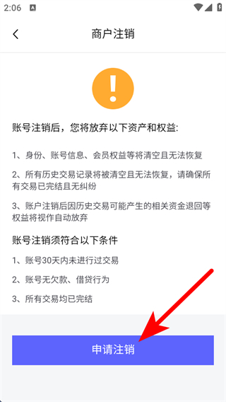 4、仔细阅读须知,确认账号满足注销条件后,点击申请注销。