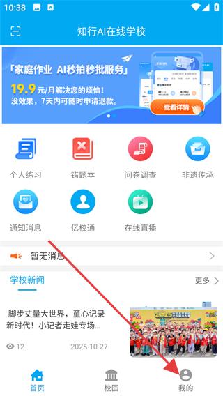 1、打开亿谷智慧教育,点击底部导航栏我的。