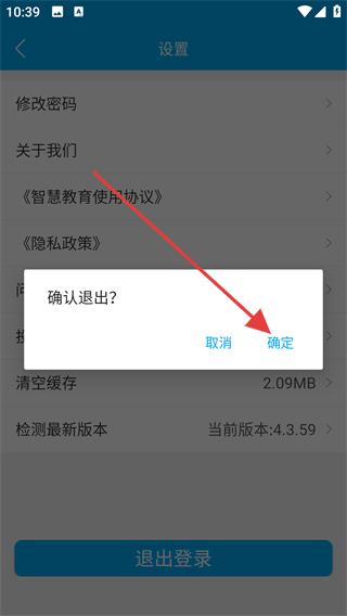 4、在弹窗中,点击确定按钮,即可退出登录。