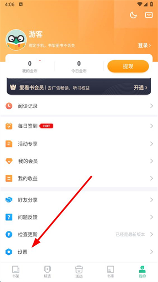 1、在爱看书极速版首页点击右下角我的,进入个人页面。