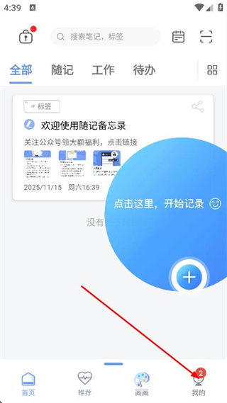 1、打开随记备忘录APP,点击底部导航栏我的选项。
