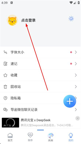 1、打开随记备忘录app,点击底部导航栏最右侧我的图标,进入个人相关界面。