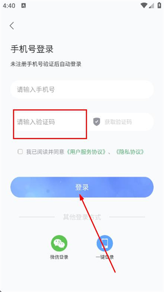 4、输入收到的验证码,点击登录,即可完成账号登录。