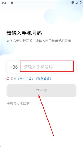 2、进入登录页面后,输入手机号码点击下一步。