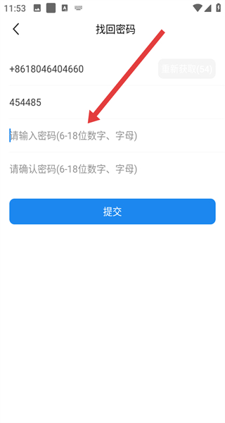 4、填写好验证码,点击设置新密码并确认密码后,点击提交按钮,完成密码找回操作。