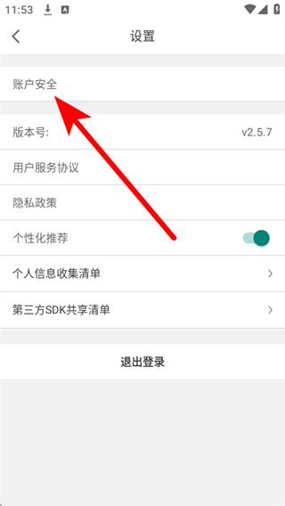 3、在设置界面里,点击账户安全选项,进入账户安全页面。
