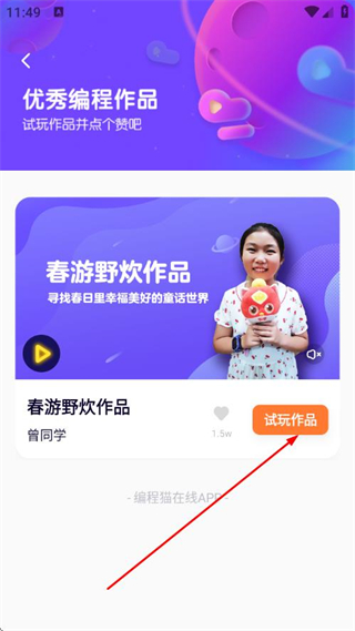2、在优秀编程作品页面,找到想要玩的作品,点击试玩作品。