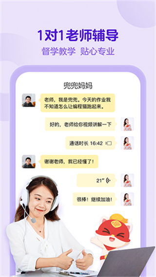 2、每门课程均配备专业老师进行辅导,学习编程不再不孤单。