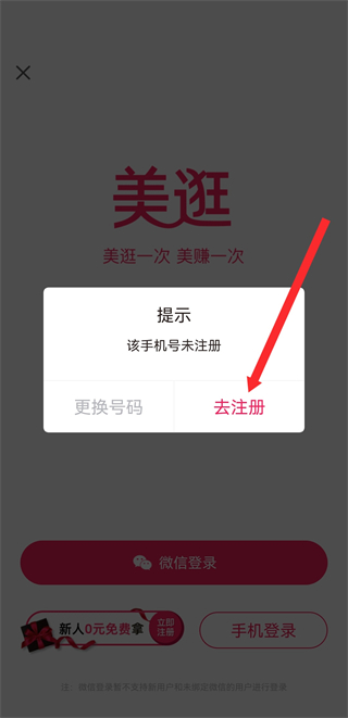 4、若提示手机号未注册,我们需要点击去注册,按照提示完成注册。