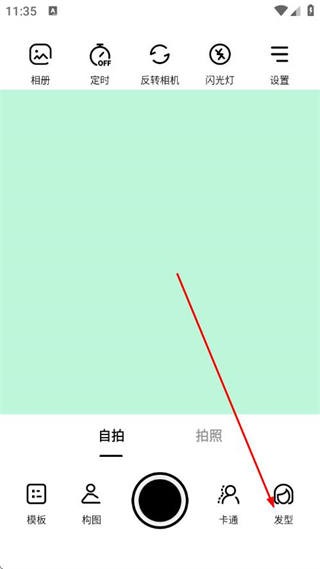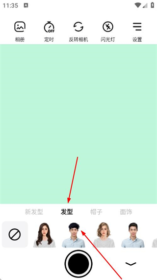 1、打开奇妙P图APP,在拍摄界面点击发型选项。