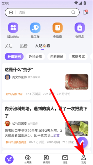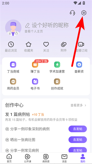 1、打开丁香园APP,点击底部导航栏的我的选项,进入个人页面。