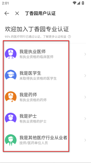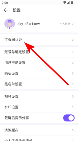 3、在设置界面里,点击丁香园认证选项,进入丁香园用户认证页面。