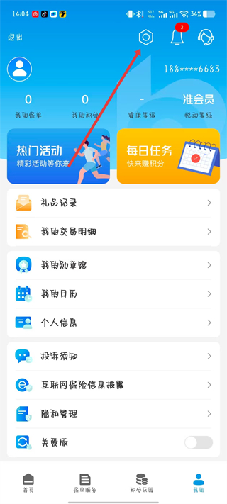 1、打开交银人寿APP,点击底部我的选项,进入个人页面。