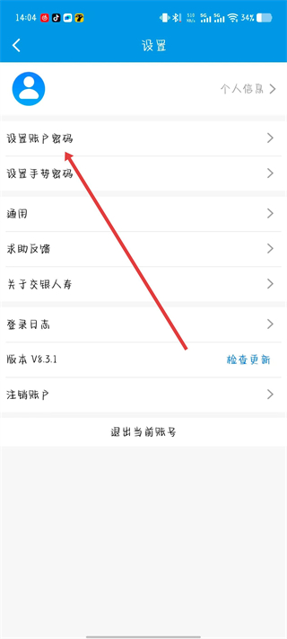 3、在设置页面点击设置账户密码选项,进入设置密码页面。