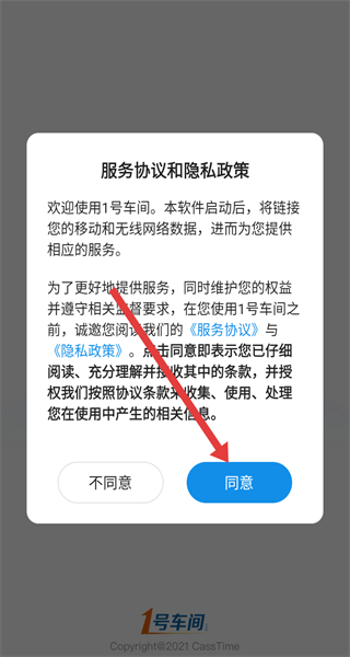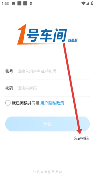 1、点击同意按钮,同意1号车间服务协议和隐私政策,进入登录界面。