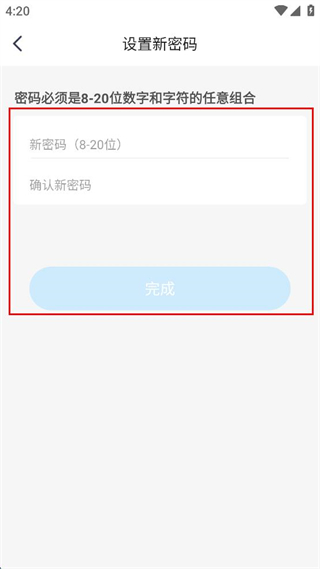 4、在设置界面输入新密码并确认密码,点击“完成”按钮完成密码设置。