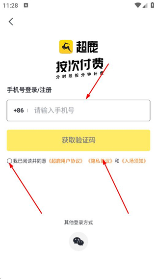 3、输入手机号码,勾选同意后,点击获取验证码。