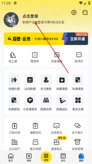 1、打开超鹿运动APP,点击底部我的。