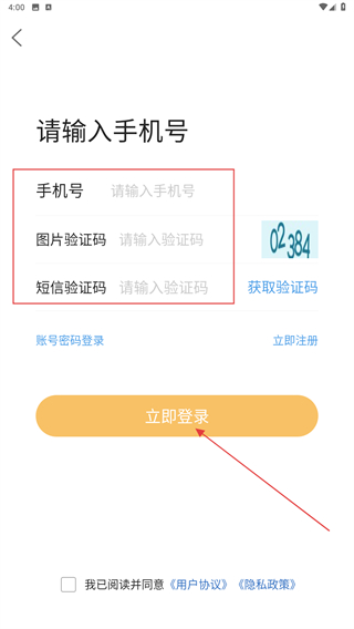 3、输入手机号、图片验证码以及短信验证码后,点击立即登录即可。