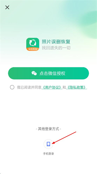 3、在登录选择界面点击“手机登录”,进入手机验证码登录界面。