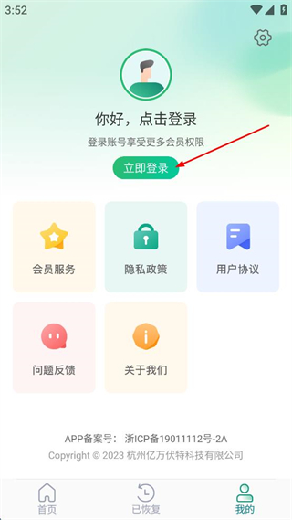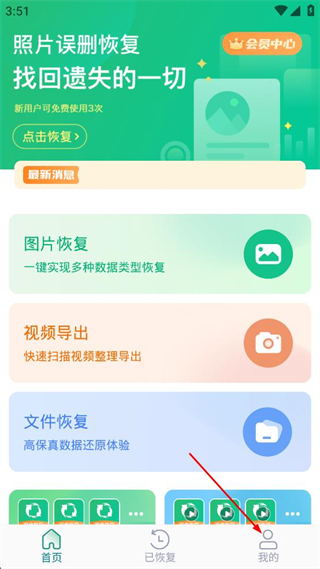 1、打开照片恢复APP,点击右下角“我的”,进入个人页面。