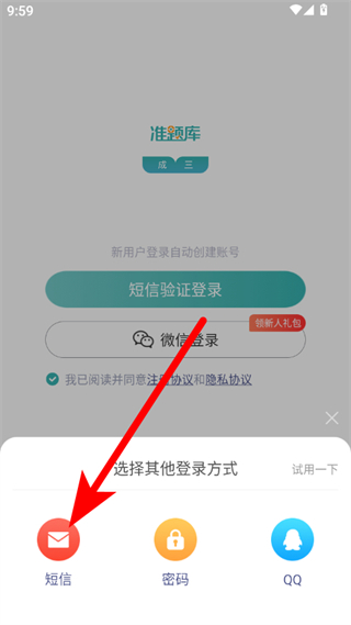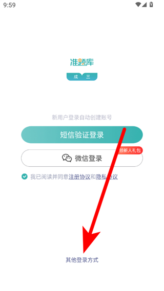 1、在学位英语准题库登录页面,点击其他登录方式选项,弹出登录方式选择窗口。