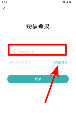 3、在短信登录界面,输入手机号并点击获取验证码,然后输入收到的验证码。