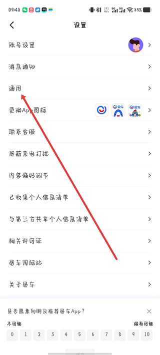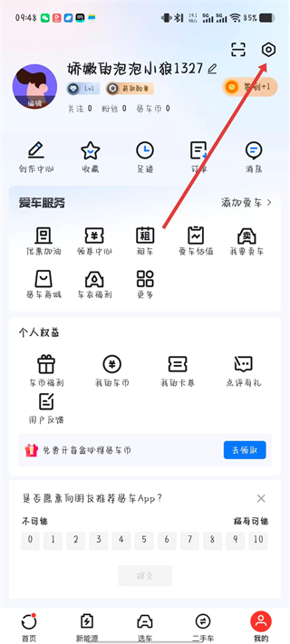 1、打开易车APP,点击右上角设置,进入设置页面。