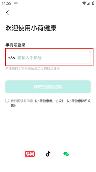 3、在手机号登录界面的请输入手机号栏输入手机号。