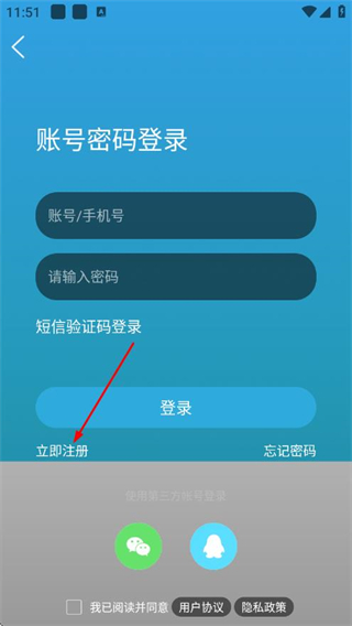 2、在注册界面点击立即注册后,进入输入手机号界面。