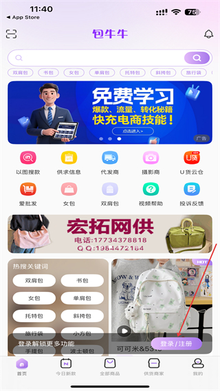 包牛牛是北京聚源百成网络科技有限公司旗下的专业箱包产地货源网站,依托于河北白沟以及广州狮岭产地优势为广大网销卖家提供一站式的箱包类商家信息、货源信息等。各类箱包款式实时更新,每天上新数百款箱包让你随时掌握行业动态,卖家通过一键发布应用即可将厂家的商品发布到淘宝、拼多多、阿里、虾皮等第三方电商平台,摒弃了传统的上门选款、加好友进空间等极为费时耗力的人力模式,为广大卖家朋友探索出了:商家—平台—卖家的形式,使用户实现了“足不出户便知市场最新动态”,让你身处任何地方都能坐享产地的优势货源。 找款、选款一站式搞定,极大提高了工作效率;另外平台还为用户提供一件代发、摄影设计、电商培训、流行资讯等服务,解决了远离市场的卖家无法现场拿货、传统厂商必须实地找款、选款等行业难题,在行业内受到广大用户一致好评!