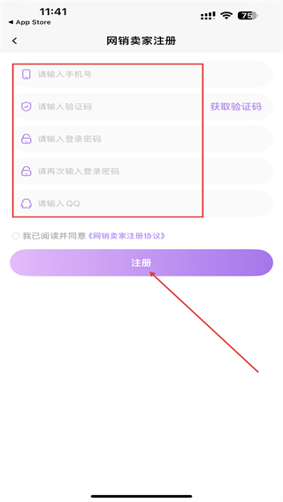3、在下方弹出的信息中,点击网销卖家注册的按钮。