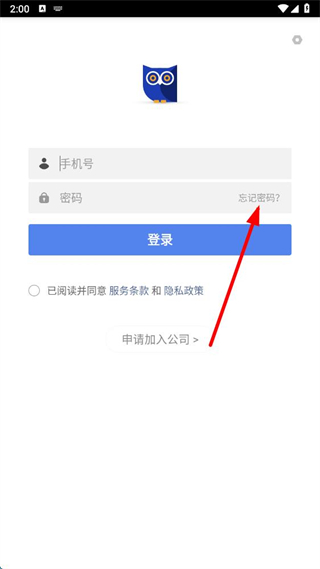 1、在仟客app登录界面,点击忘记密码,进入找回密码界面。