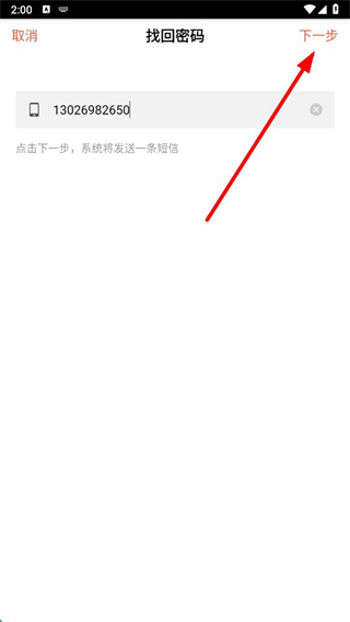 3、输入手机号后点击下一步,输入验证码按照提示即可完成密码找回操作。