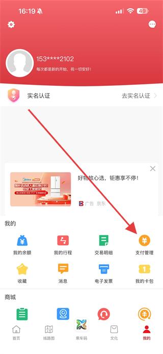 2、在个人页面中,点击支付管理选项,进入支付管理界面。