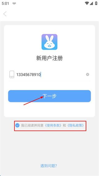 3、勾选我已阅读并同意使用条款和隐私政策,点击下一步按钮。
