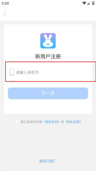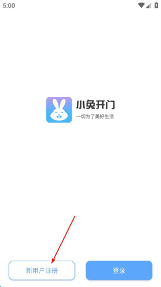 1、找到小兔开门界面的新用户注册选项,点击新用户注册。