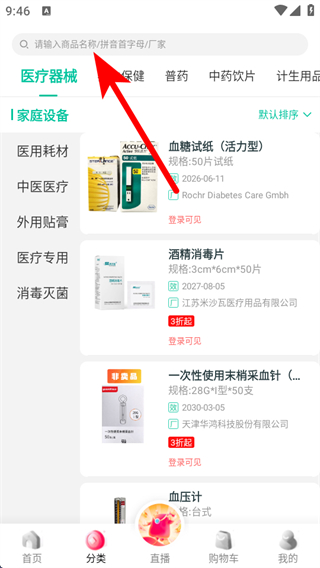 3、在分类页搜索栏输入商品名如药箱,查找目标商品。